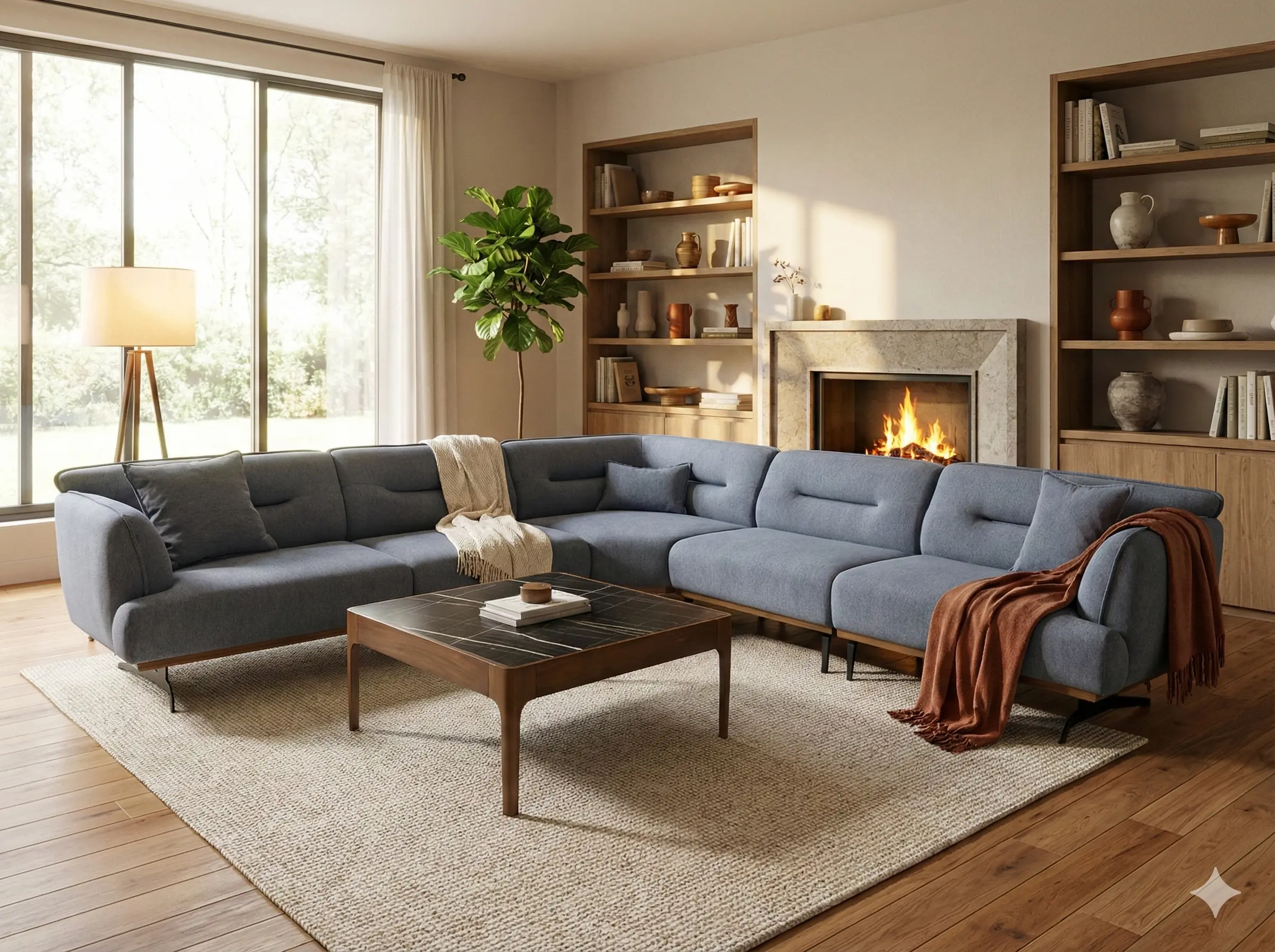 Këndi Lotus – Garniturë 310×310 me Thesi Ngjyrë Kaltër